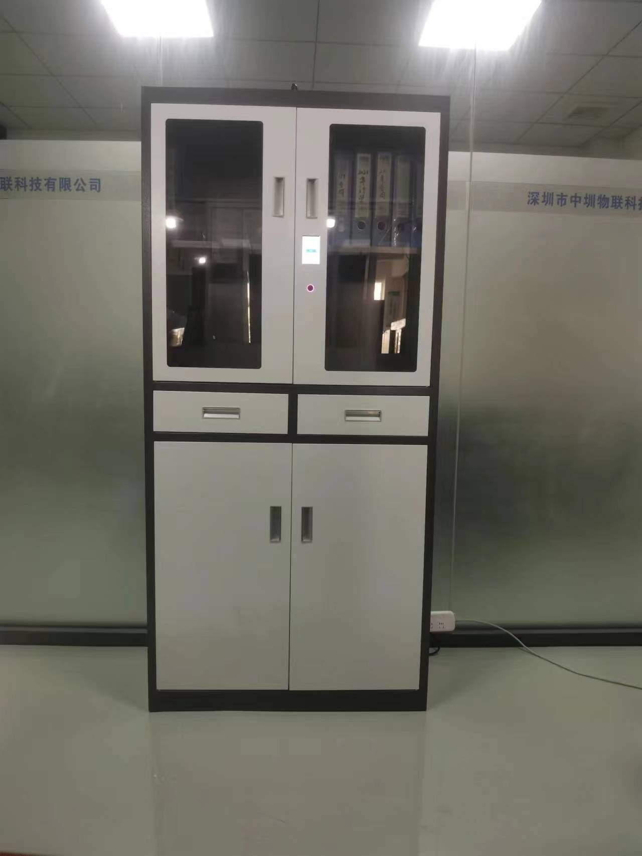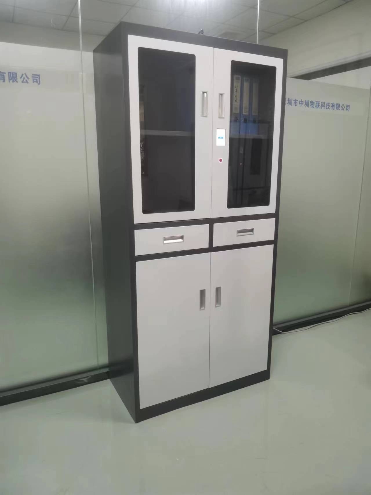 新型智能文件柜,指紋、密碼開柜,柜門、抽屜自動彈開。